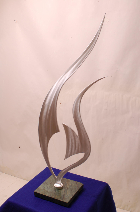 His metal art designed for home decor, yard art and landscape design metal sculpture are each custom designed for your specific space in aluminum, steel and stainless steel. His abstract art sculptures for interior design tabletop or large scale outdoor installations are described as absolutely exhilarating evoking both energy and modern art design.