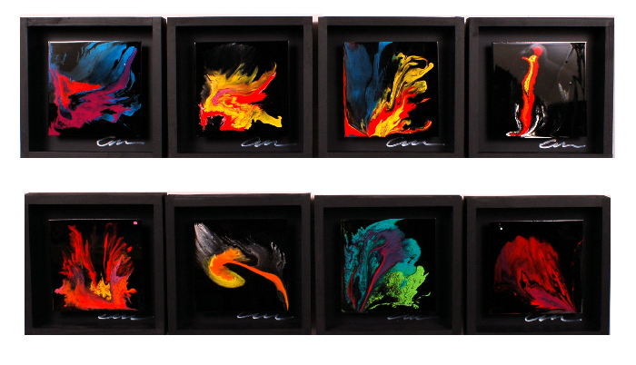 This is a series of smaller editions of my "Erotica" pieces. Each are automotive enamel on metal beautifully shadowbox framed in eggshell black.Great when done in a grouping collage. $375 each.