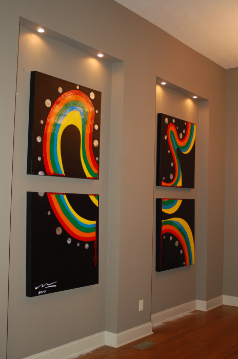 Acrylic & metal on museum stretched canvas. As show, each is 36" x 36" x 2.5" This concept is available as a custom order commission ©Mac Worthington, artist