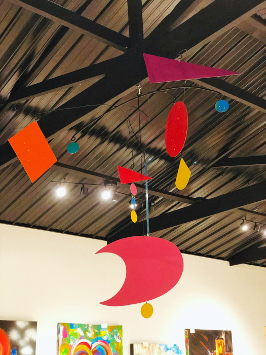 Ceiling suspended mobile. Steel, aluminum painted automotive enamel Signed & dated. Certificate of Authenticity. Ready to hang Delivery, installation or shipping is available For further information on this piece or to discuss a custom design please call 614 | 582 | 6788 or email: macwartist@aol.com