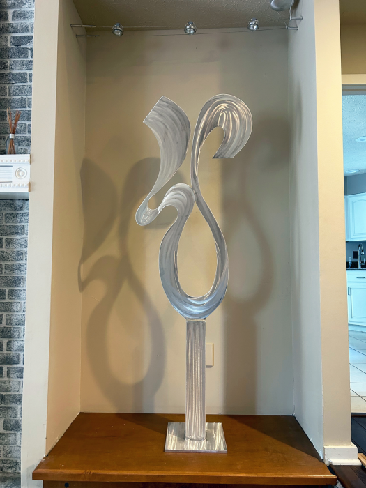 Art isn’t just for walls! Featured on HGTV, Mac Worthington award winning contemporary art sculpture grace residential and corporate outdoor settings throughout the US and abroad. His metal art designed for home decor, yard art and landscape design metal sculpture are each custom designed for your specific space in aluminum, steel and stainless steel. His abstract art sculptures for interior design tabletop or large scale outdoor installations are described as absolutely exhilarating evoking both energy and modern art design. For over 4 decades this artist has attained a global presence and pushed the envelope into a new league of contemporary abstract art.