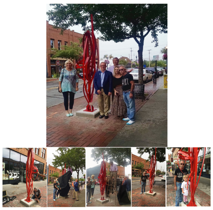 Dedication Ceremony at Gallery 22 with Delaware, Ohio City Manager Tom Homan, Mayor Carolyn Riggle, Arts Castle President Ralph Hodges & Executive Director Diane Hodges. "A Good Time Then" ©Mac Worthington, artist, 2018 Permanent Public Art Collection