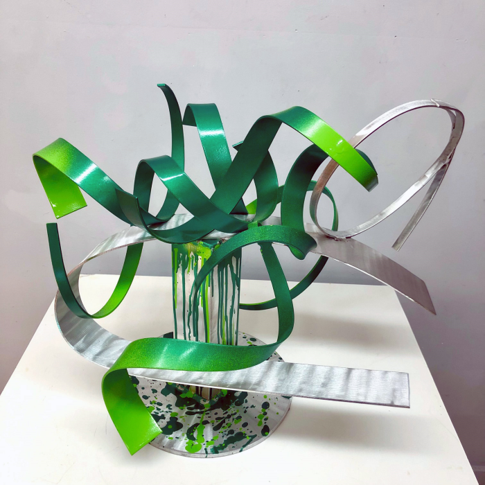 Tabletop or outdoor sculpture Welded aluminum painted metallic emerald green Available. Signed & dated. Certificate of Authenticity. Delivery, hanging & shipping worldwide Studio, Gallery & Sculpture Park, 5935 Houseman Rd, historic Ostrander, Ohio. Here, inspiration is everywhere you look. From the gallery walls to the sculpture park grounds. For further information on this piece or to discuss a custom design please call 614 | 582 | 6788 or email: macwartist@aol.com
