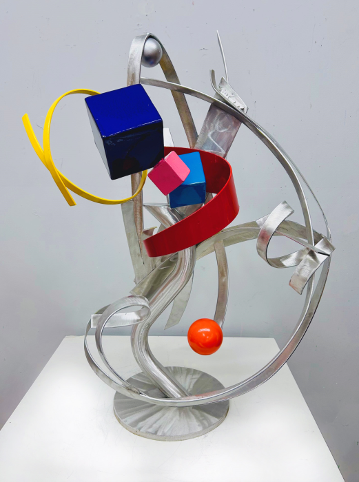 Welded, high polished with a machine brush finish Painted candy apple purple, blue, pink, chrome yellow & orange. Available. Signed & dated. Certificate of Authenticity. Delivery, shipping worldwide Studio, Gallery & Sculpture Park, 5935 Houseman Rd, historic Ostrander, Ohio. Here, inspiration is everywhere you look. From the gallery walls to the sculpture park grounds. For further information on this piece or to discuss a custom design please call 614 | 582 | 6788 or email: macwartist@aol.com