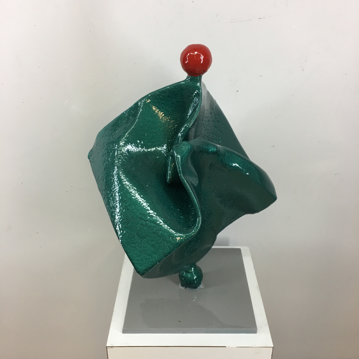 Iron tabletop or outdoor sculpture painted metallic Emerald green and flame red