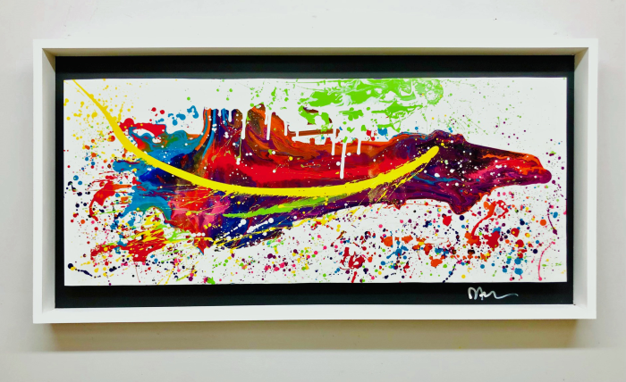 Acrylic enamel on metal floating in a pearl white shadowbox frame. Available. Signed & dated. Certificate of Authenticity. Delivery, hanging & shipping available Studio, Sculpture Park & Gallery, 5935 Houseman Rd, historic Ostrander, Ohio. For further information on this piece or to discuss a custom design please call 614 | 582 | 6788 or email: macwartist@aol.com