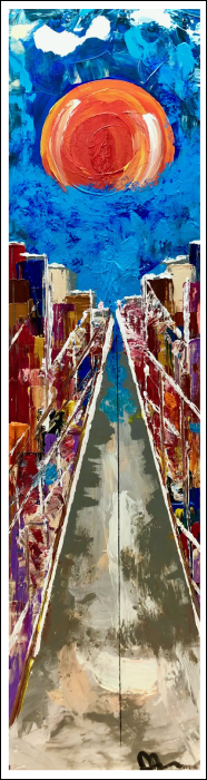 Acrylic on stretched canvas. Available. Signed & dated. Certificate of Authenticity. Delivery, hanging & shipping available Studio: 5935 Houseman Rd, historic Ostrander, Ohio. For further information on this piece or to discuss a custom design please call 614 | 582 | 6788 or email: macwartist@aol.com