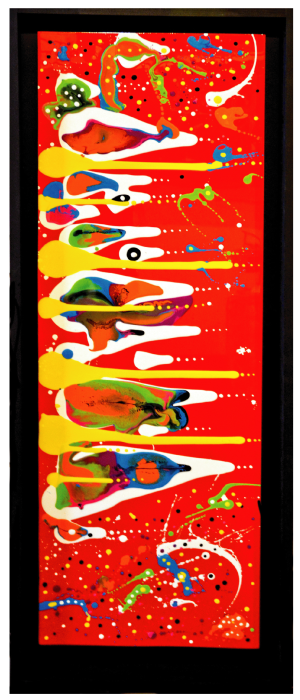 Automotive enamel on metal plate floating in a shadowbox frame.