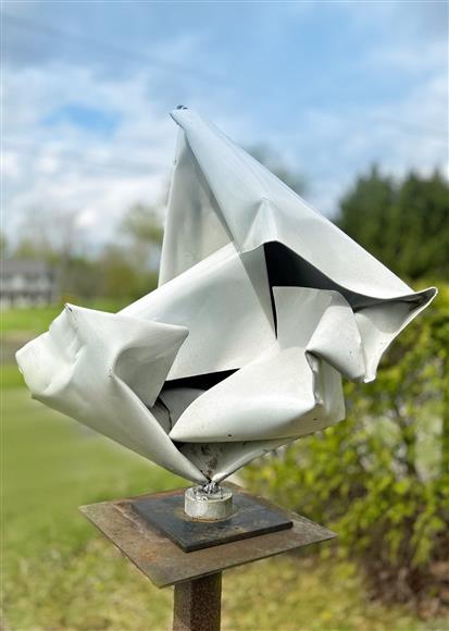 Welded aircraft aluminum painted Dupont automotive enamel 77" x 30" x 30" Delivery, shipping & Installation available * may be seen at my sculpture park in Ostrander, Ohio