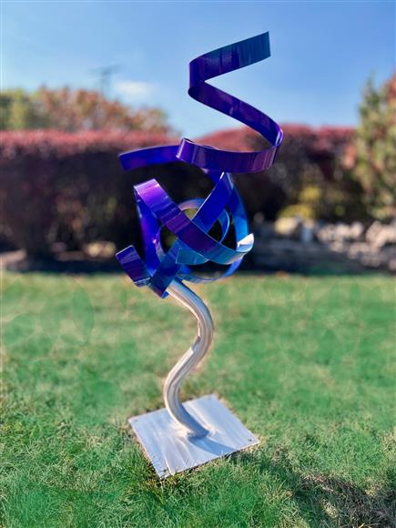 Outdoor sculpture painted candy apple purple and electric blue. Gorgeous ! Delivery & worldwide shipping is available 43" x 18" x 18 ?Art isn't just for walls. Stop by. See this and the whole collection