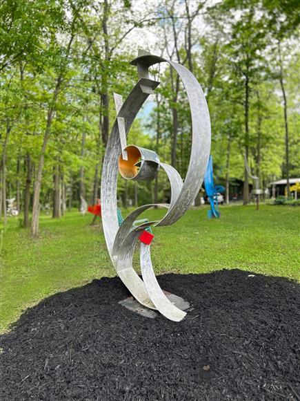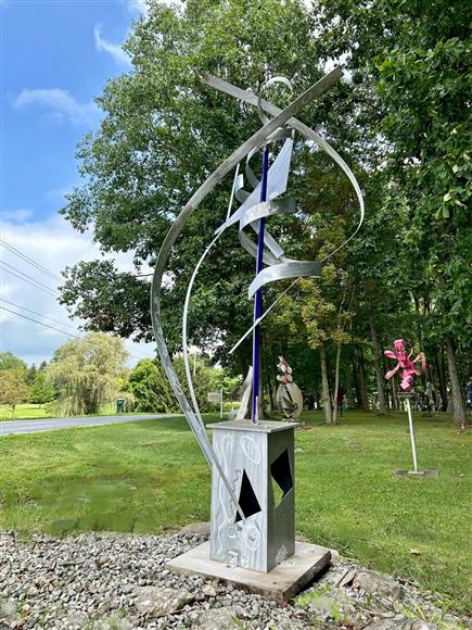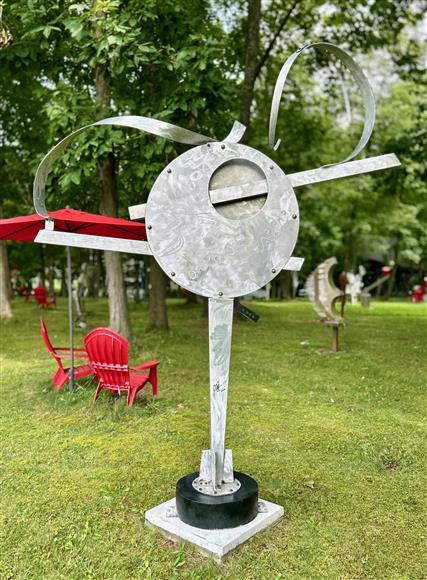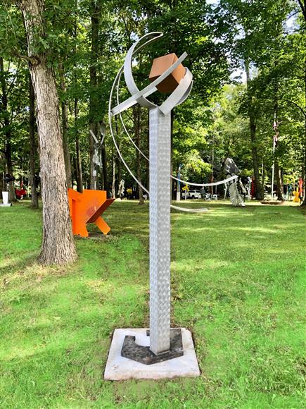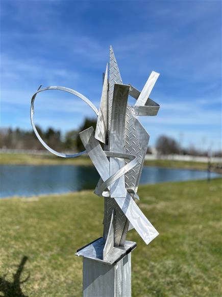 Welded aluminum high polished with a machine brush finish. Located at my Sculpture Park - 5935 Houseman Road, Ostrander, Ohio Signed & dated. Certificate of Authenticity 60" x 42" x 27"