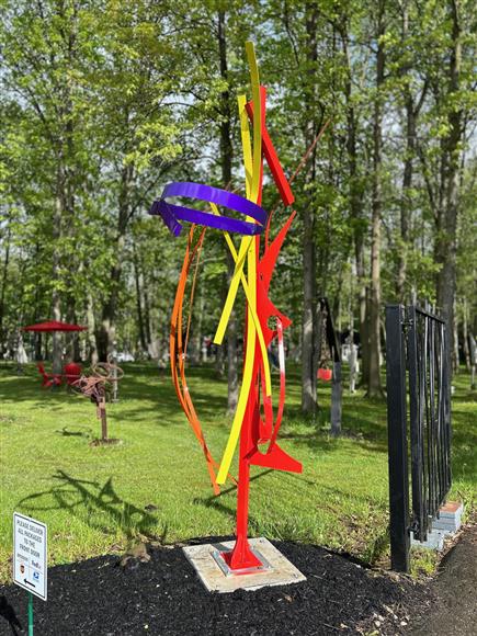 Iron painted Dupont enamel Signed & dated. Certificate of Authenticity Located at Mac Worthington Sculpture Park, Ostrander, Ohio 138" x 36" x 36"