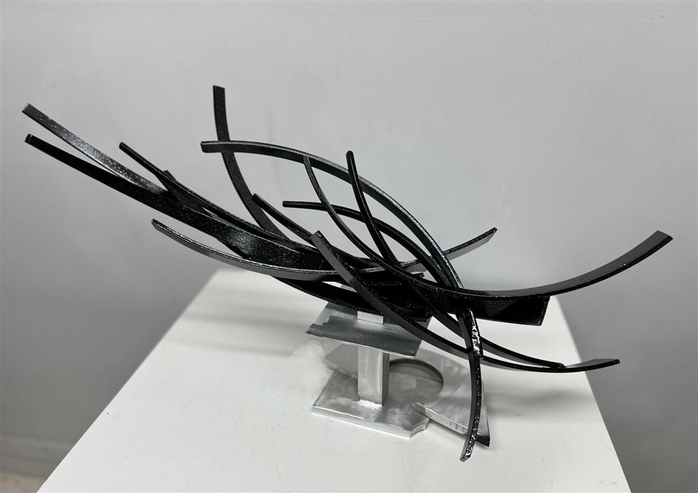 Tabletop or outdoor sculpture painted pitch black with silver metal flake clear coat. Delivery & worldwide shipping is available 18" x 36" x 13" ?Art isn't just for walls. Stop by. See this and the whole collection