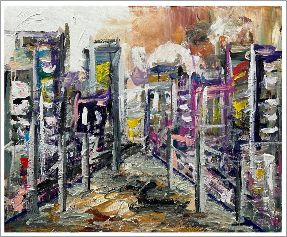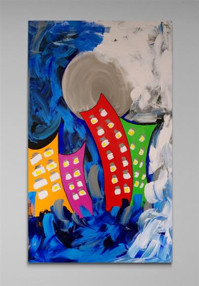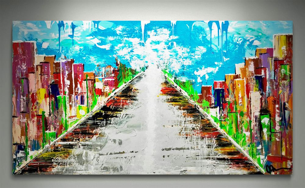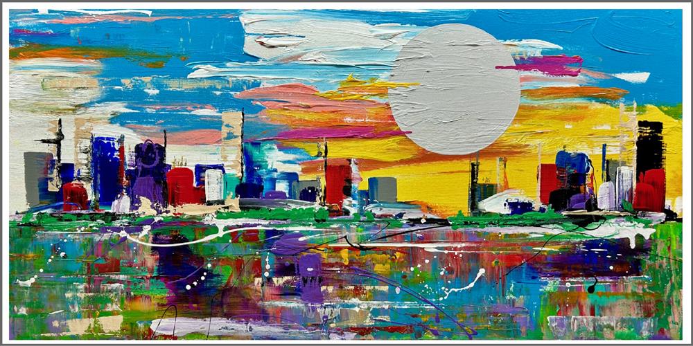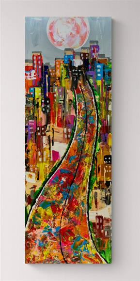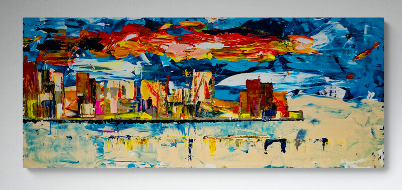 Acrylic on stretched canvas Expressionistic City Scape Signed & dated. Certificate of Authenticity. Ready to hang 57" x 32" x 3" 11"x17" Giclee Prints $55
