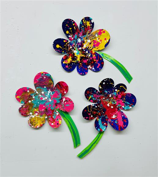 Metal flower painted acrylic enamel on gallery stretched white canvas Available. Signed & dated. Certificate of Authenticity. Ready to hang 32" x 32" x 2"