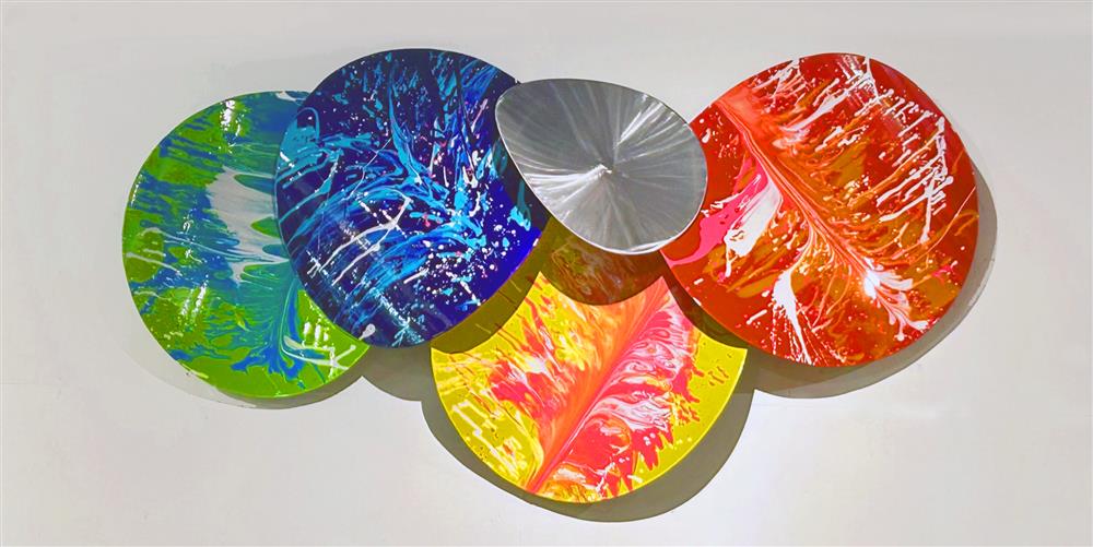 Metal painted Dupont automotive enamel floating in a shadowbox frame Signed & dated. Certificate of Authenticity. Ready to hang. 60" x 60" x 3" 11"x17" Giclee Prints $55
