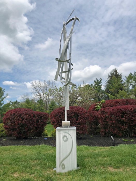 Welded, polished aluminum with a machine brush finish. Available. Signed & dated. Certificate of Authenticity. Delivery & Installation or shipping is available For further information on this piece or to discuss a custom design please call 614 | 582 | 6788 or email: macwartist@aol.com