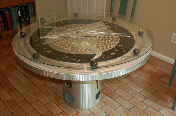 Think you've seen it all? You won't find this in the mall! Featured on HGTV, Mac’s one of a kind original functional art and metal furniture is unparalleled in its brilliance and savvy interior design sensibility. This renowned artist in the field of metal art works to create custom bars, tables, chairs, mirrors, end tables, and more to custom design to your desired size and color scheme These pieces will unmistakably add a contemporary and modern art flair to your home decor or office decor. This artist has pushed the envelope into a new league of contemporary abstract art like nothing that precedes it with works in sophisticated private collections all over the US and abroad.
