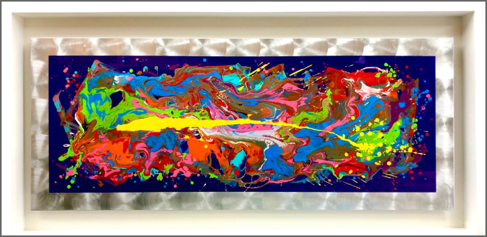 Acrylic enamel on metal floating in a pearl white shadowbox frame. Available. Signed & dated. Certificate of Authenticity. Delivery, hanging & shipping available Studio, Sculpture Park & Gallery, 5935 Houseman Rd, historic Ostrander, Ohio. For further information on this piece or to discuss a custom design please call 614 | 582 | 6788 or email: macwartist@aol.com