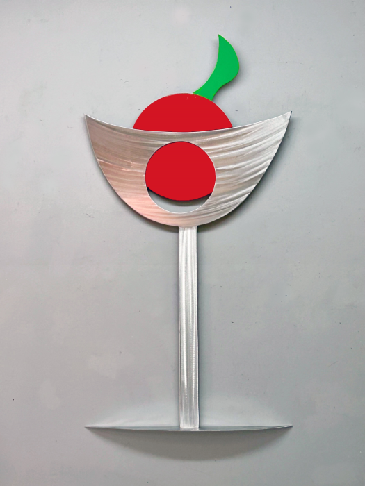 Margarita wall sculpture. High polished with a machine brush finish painted flame red and green. Ready to hang.