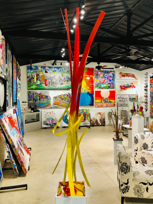 Welded aluminum painted flame red & chrome yellow acrylic enamel Available. Signed & dated. Certificate of Authenticity. Delivery & Installation or shipping is available For further information on this piece or to discuss a custom design please call 614 | 582 | 6788 or email: macwartist@aol.com