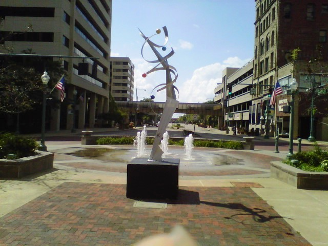 This piece is located in downtown Canton, Ohio as a part of their permanent public art. All welded, high polished, brushed aluminum. This concept is available as a custom order commission.