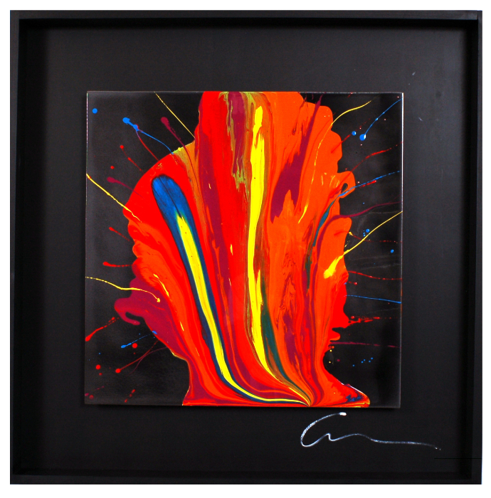 Automotive enamel on metal finished with 10 coats of clear and shadowbox framed.