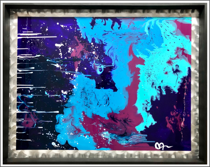 Acrylic enamel on high polished metal in an eggshell black shadowbox frame. Available. Signed & dated. Certificate of Authenticity. Delivery, hanging & shipping available Studio, Gallery & Sculpture Park, 5935 Houseman Rd, historic Ostrander, Ohio. For further information on this piece or to discuss a custom design please call 614 | 582 | 6788 or email: macwartist@aol.com