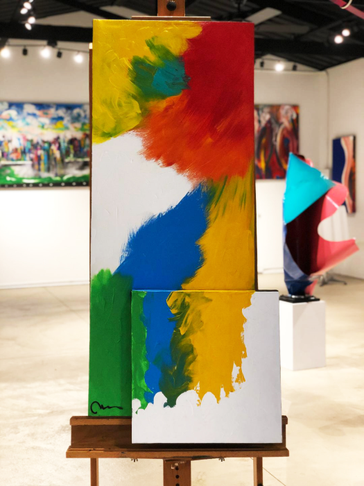 Heavy acrylic on two museum stretched canvases.
