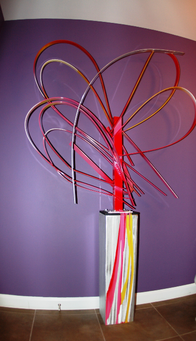 Art isn’t just for walls! Featured on HGTV, Mac Worthington award winning contemporary art sculpture grace residential and corporate outdoor settings throughout the US and abroad. His metal art designed for home decor, yard art and landscape design metal sculpture are each custom designed for your specific space in aluminum, steel and stainless steel. His abstract art sculptures for interior design tabletop or large scale outdoor installations are described as absolutely exhilarating evoking both energy and modern art design. For over 4 decades this artist has attained a global presence and pushed the envelope int a new league of contemporary abstract art.