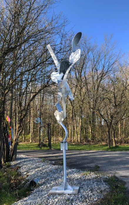 Welded aluminum polished with a machine brush finish. Available. Signed & dated. Certificate of Authenticity. Ready to hang Delivery & Installation or shipping is available For further information on this piece or to discuss a custom design please call 614 | 582 | 6788 or email: macwartist@aol.com