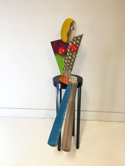 High polished, brushed, welded aluminum female nude figure. The stool is welded aluminum painted satin black. Stool is included. ©Mac Worthington, artist, 2017 For further information on this piece or to discuss a custom design please call 614 | 582 | 6788 or email: macwartist@aol.com