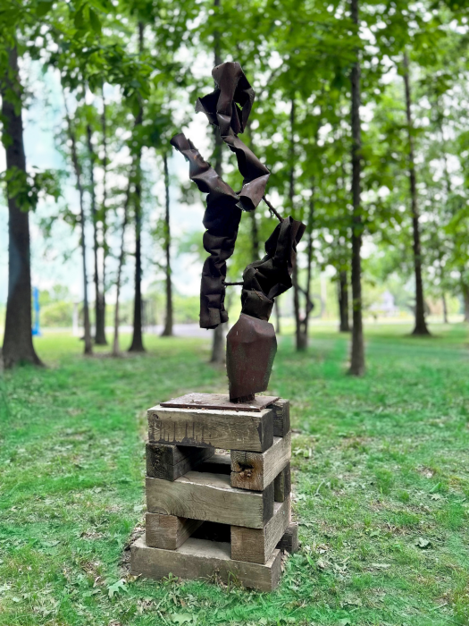 Weathered steel. Available. Signed & dated. Certificate of Authenticity. Delivery, hanging & shipping available Studio, Gallery & Sculpture Park, 5935 Houseman Rd, historic Ostrander, Ohio. For further information on this piece or to discuss a custom design please call 614 | 582 | 6788 or email: macwartist@aol.com
