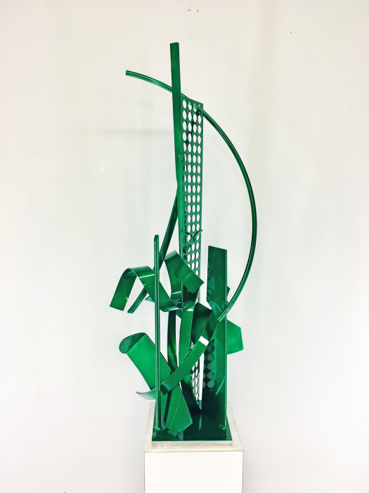 Welded, polished & brushed aluminum painted metallic emerald green. Signed & dated. Certificate of Authenticity