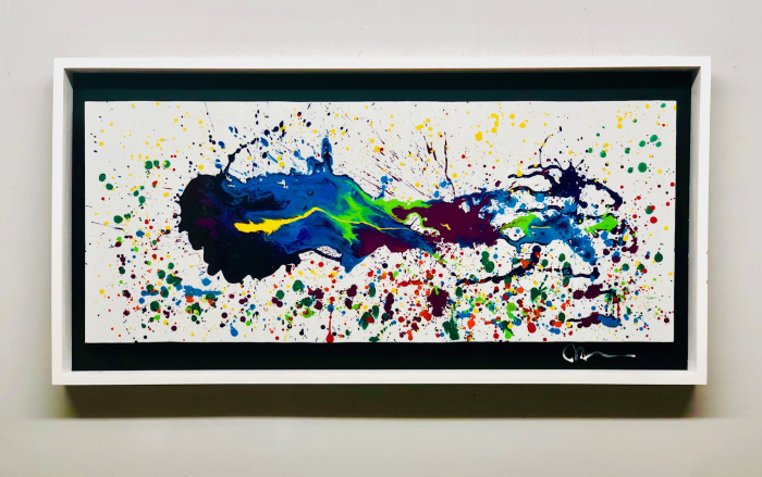 Metal painted acrylic enamel automotive paint floating n a pearl white shadowbox frame. Available. Signed & dated. Certificate of Authenticity. Delivery, hanging & shipping available Studio: 5935 Houseman Rd, historic Ostrander, Ohio. For further information on this piece or to discuss a custom design please call 614 | 582 | 6788 or email: macwartist@aol.com