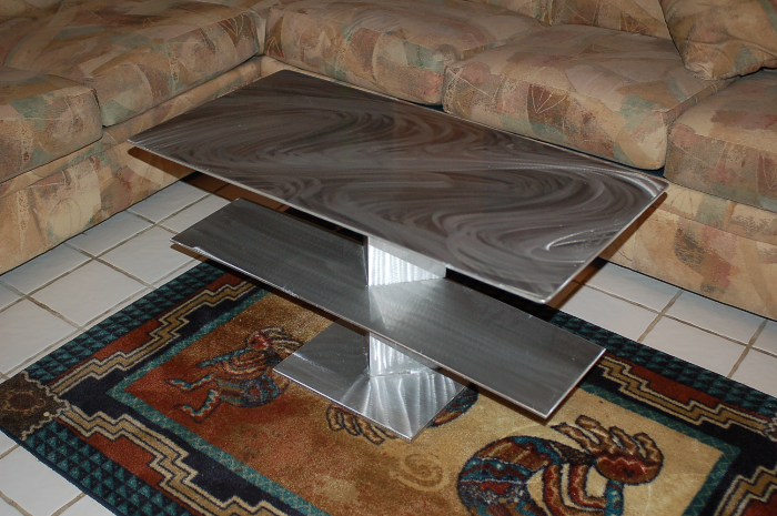 All welded, highly polished, brushed aluminum with 12 coats of clear enamel.