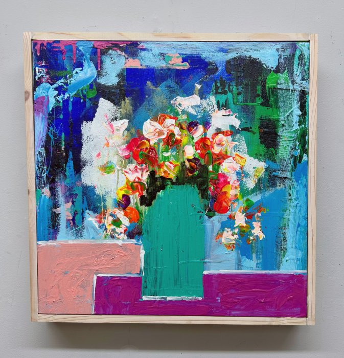 Acrylic on stretched canvas. Framed bleach white. Available. Signed & dated. Certificate of Authenticity. Delivery, hanging & shipping worldwide Studio, Gallery & Sculpture Park, 5935 Houseman Rd, historic Ostrander, Ohio. Here, inspiration is everywhere you look. From the gallery walls to the sculpture park grounds. For further information on this piece or to discuss a custom design please call 614 | 582 | 6788 or email: macwartist@aol.com