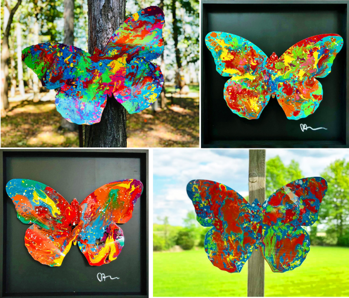 Float Like a Butterfly ! Unframed $495. Shadowbox framed $850 These beauties are made to order in your choice of colors All metal painted automotive enamel Signed & dated. Certificate of Authenticity. Ready to hang indoors or out Each are 29" x 20"