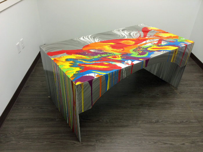 Think you've seen it all? You won't find this in the mall! Featured on HGTV, Mac’s one of a kind original functional art and metal furniture is unparalleled in its brilliance and savvy interior design sensibility. This renowned artist in the field of metal art works to create custom bars, tables, chairs, mirrors, end tables, and more to custom design to your desired size and color scheme These pieces will unmistakably add a contemporary and modern art flair to your home decor or office decor. This artist has pushed the envelope into a new league of contemporary abstract art like nothing that precedes it with works in sophisticated private collections all over the US and abroad.