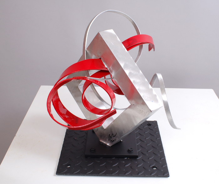 Welded aluminum painted automotice flame red tabletop or outdoor sculpture