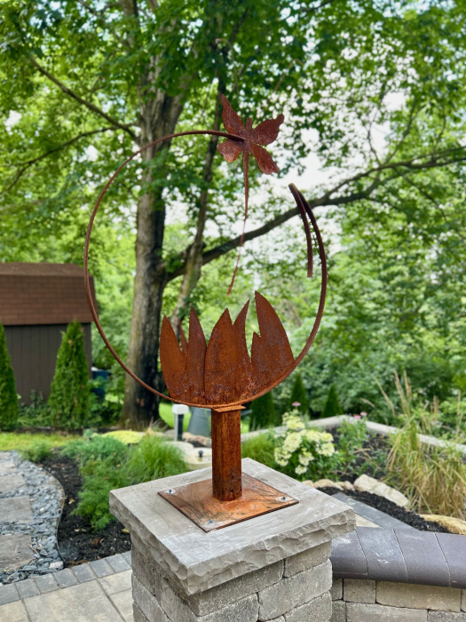 S O L D Custom commission order created for Dublin, Ohio client. Weathered steel. Available. Signed & dated. Certificate of Authenticity. Delivery & shipping worldwide Studio, Gallery & Sculpture Park, 5935 Houseman Rd, historic Ostrander, Ohio. Here, inspiration is everywhere you look. From the gallery walls to the sculpture park grounds. For further information on this piece or to discuss a custom design please call 614 | 582 | 6788 or email: macwartist@aol.com